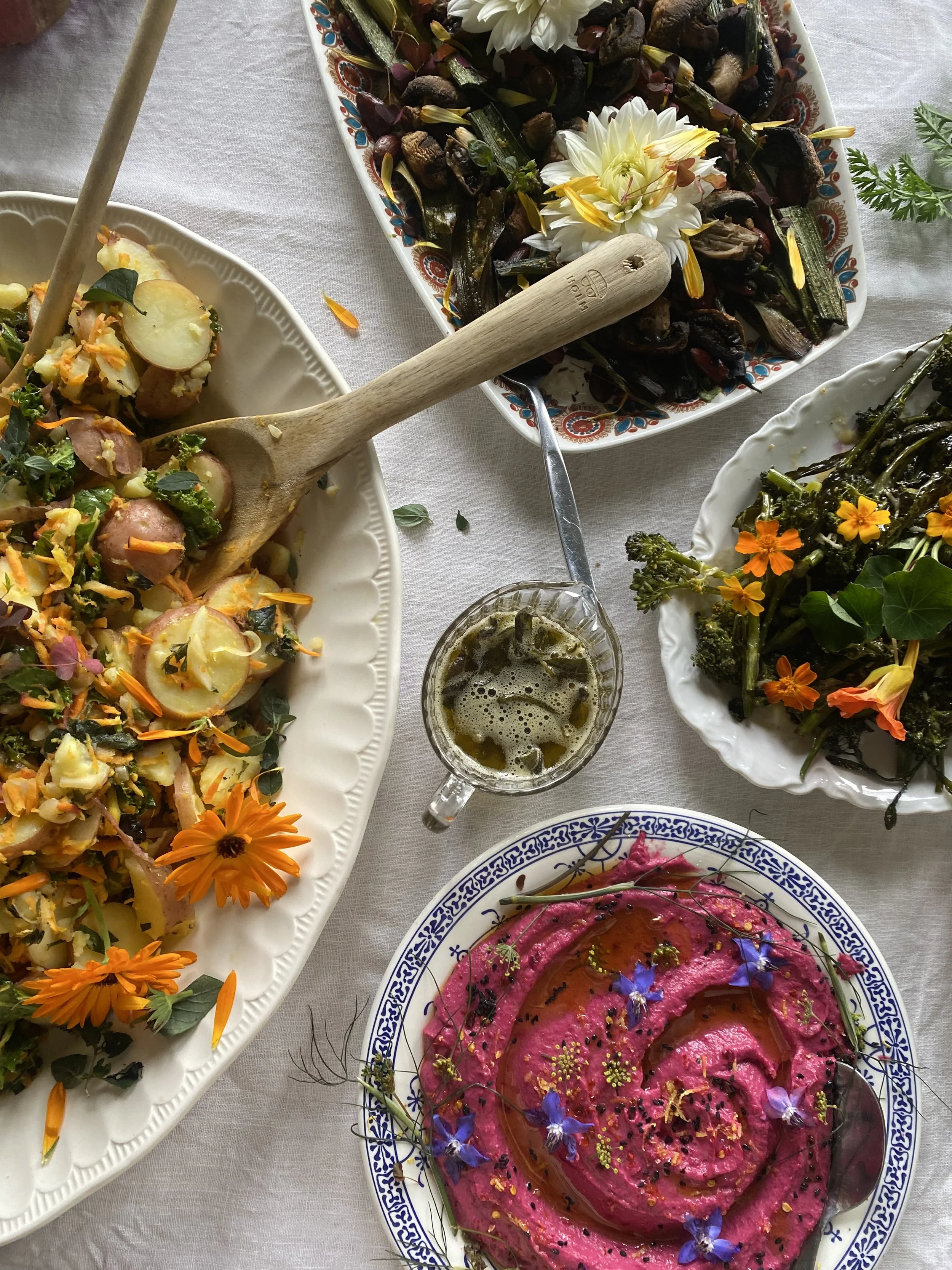 MÅLTIDER/MATKURS: Jeg står for alle måltid. Du får også bli med på et matkurs hvor du får inspirasjon til å få lage mat av sesongens grønnsaker. Sammen lager vi og deler et 8-retters måltid. Her får du bli med matlaging som et sanselig rituale der grønnsaker, blomster og urter får spille hovedrollen i fargerike og smakfulle retter. Du vil bli overrasket over at mat som gjør så godt smaker så deilig!
